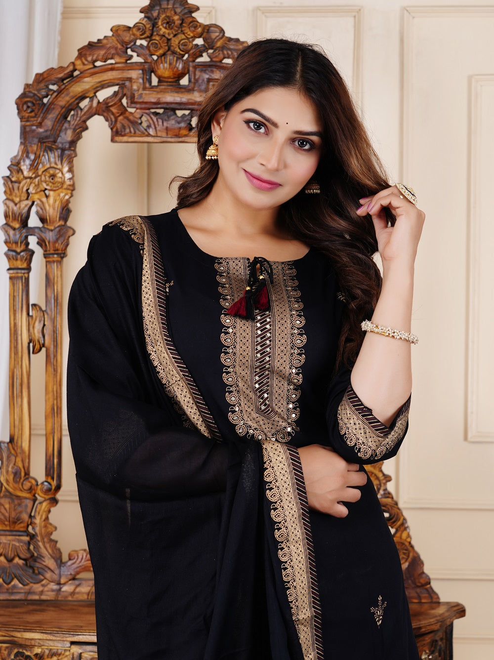Color : Black || Fabric : Pure Rayon & Cotton Duppatta
