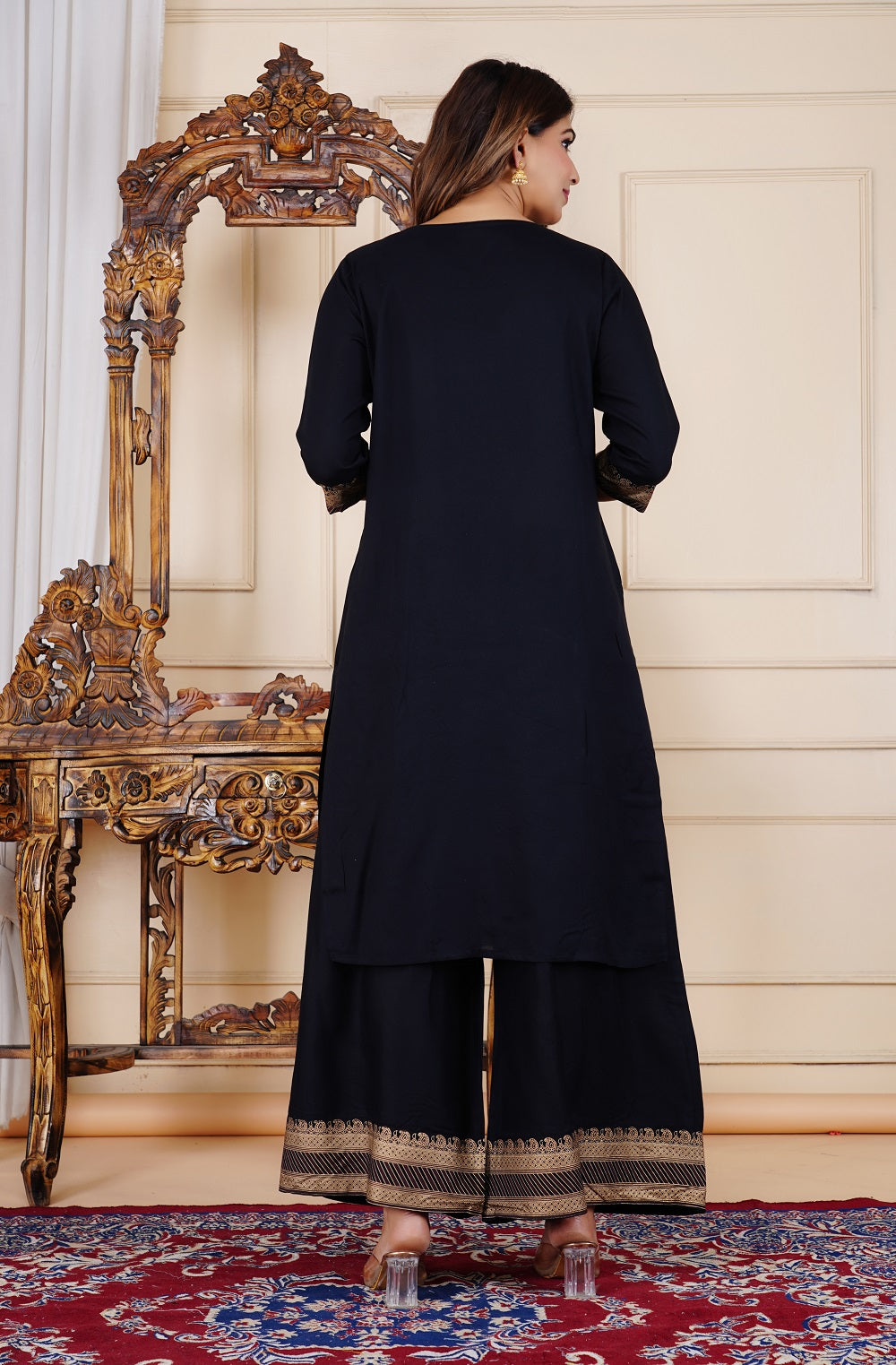 Rayon Embroidery Women's Sharara Dress Pakistani Kurti Palazzo Set with Cotton Dupatta Ethnic Dress