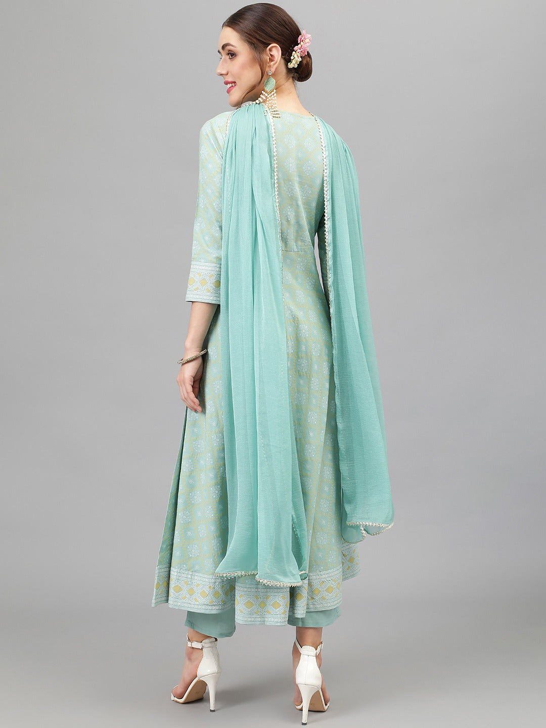 Green Color Salwar Kameez Designer Round Neck Indian Wedding Kurti Pant With Dupptta