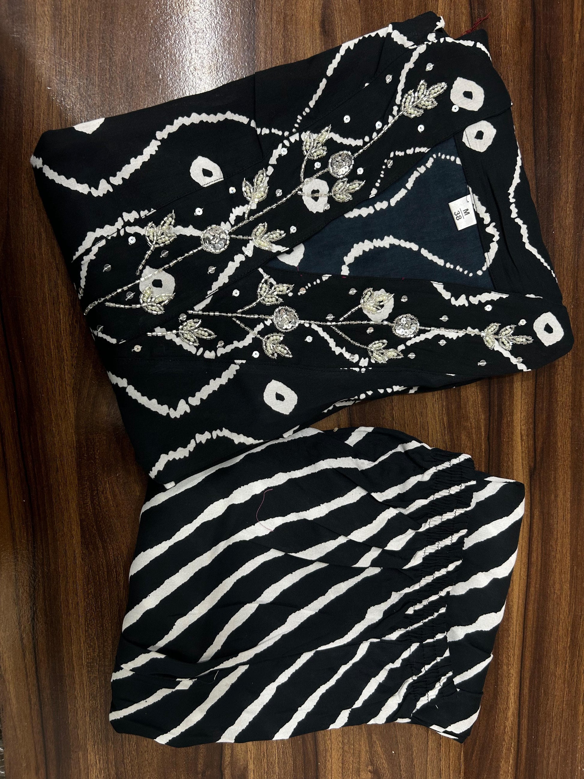 This stunning co-ord set is a must-have for any fashion-forward woman. The designer piece features a beautiful black color, intricate Indian style embroidery, and is made from high-quality Rayon material. Handmade in India, this set is perfect for any formal or casual occasion. The Kurta and Pant set is designed for women and comes in a size that will comfortably fit most body types. The attention to detail and quality of this piece is unmatched, making it a great addition to any wardrobe. Get ready to turn heads with this stylish and unique set.