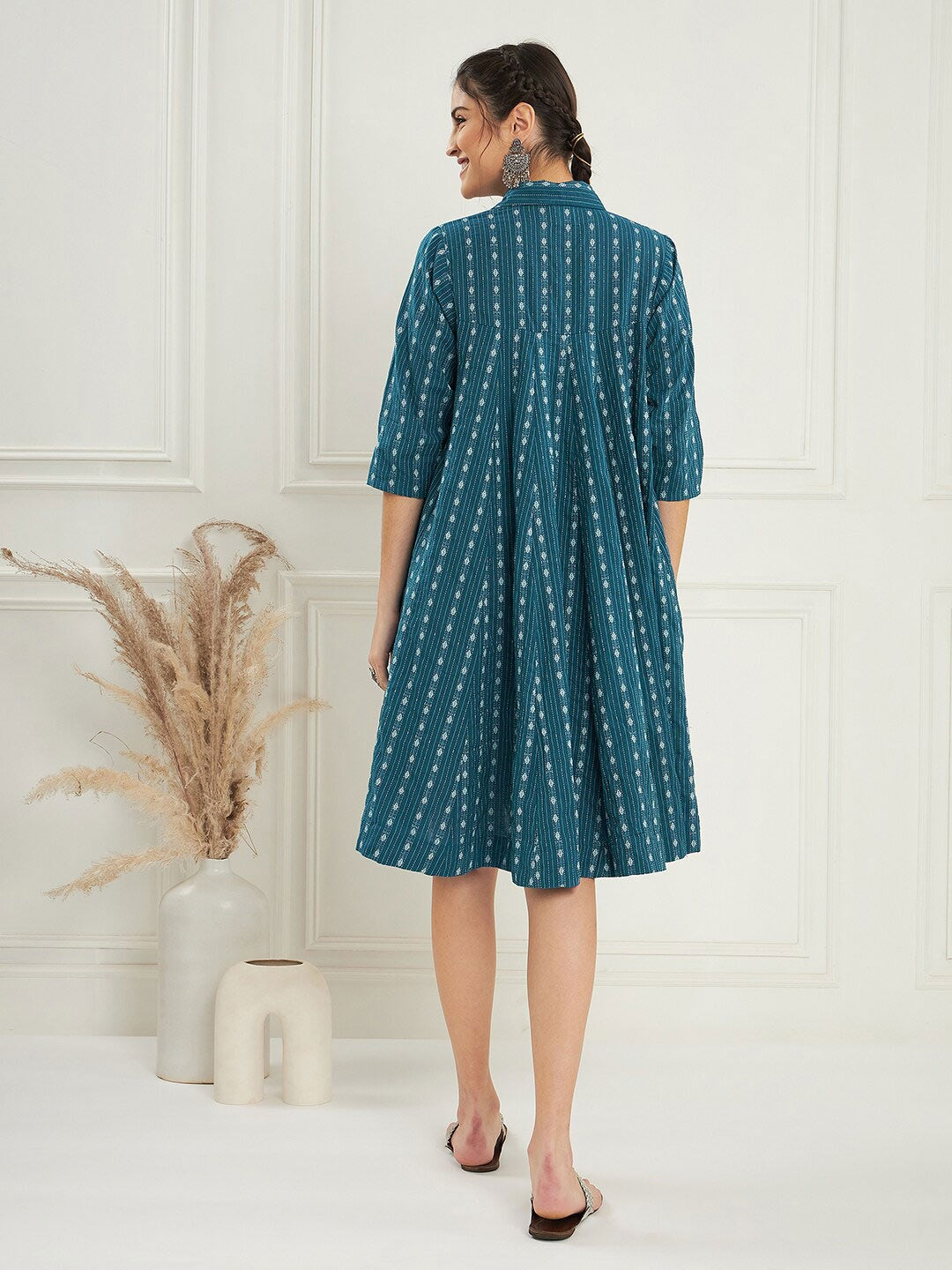 This beautifully crafted knee-length dress is designed to make a lasting impression with its elegant style and traditional craftsmanship. Made from high-quality cotton fabric, it offers unmatched comfort and sophistication, perfect for various occasions.