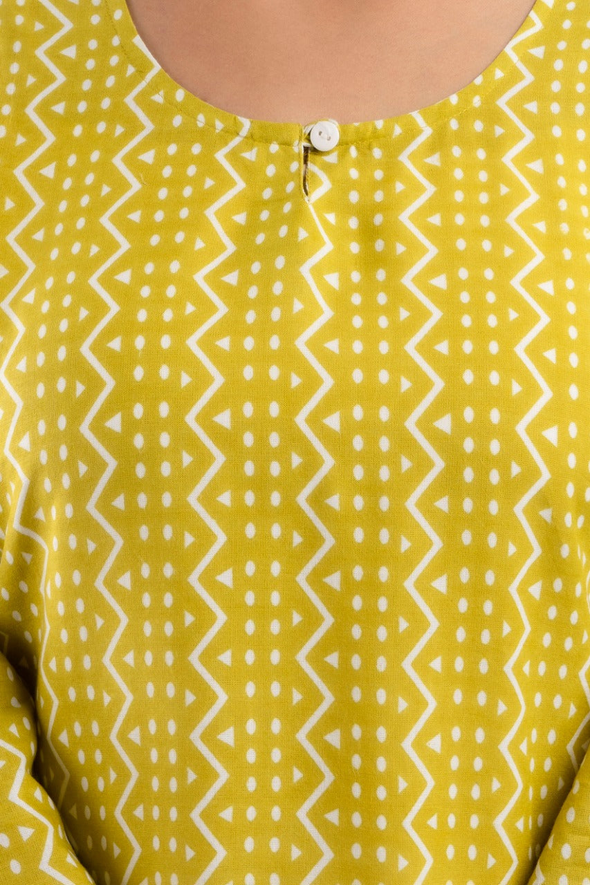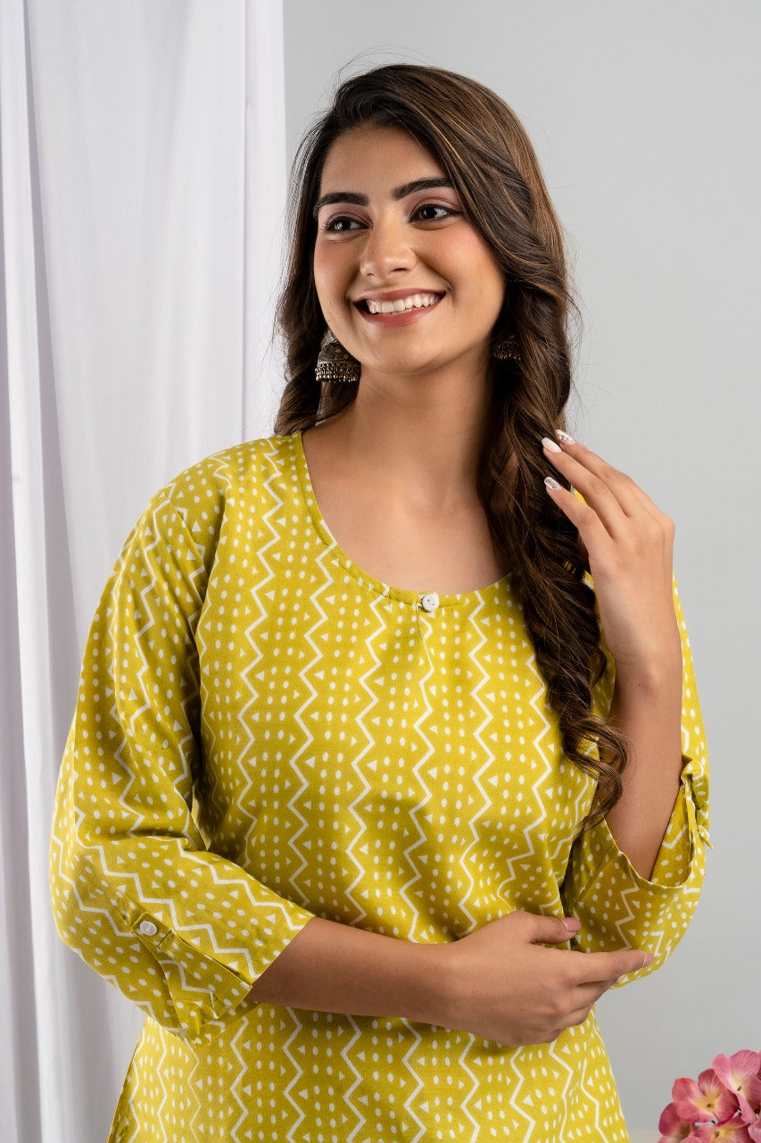 Women's Rayon Straight Printed Kurta Pant, Yellow Summer Kurta Pant Set